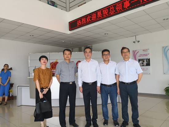 图为中国使领馆驻河内大使馆和胡志明市吴俊总领事考察企业