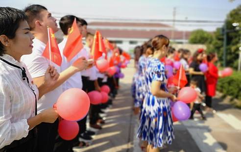 在举国上下喜迎中华人民共和国成立70周年之际,一群生活在宁波百隆纺织有限公司工作的少数民族员工,自发组织起来,开展了“民族团结一家亲、共圆中国梦”的国庆庆祝活动,其中有来自维族、藏族、土家族等少数民族员工参加了活动。大家穿着代表自己民族特色的服装,唱国歌、升国旗,与汉族员工一起载歌载舞,尽情抒发对祖国的热爱,对自己的家乡,以及对宁波这个第二故乡的热爱。大家纷纷表示,将我们各族人民的力量凝聚在一起,把祖国建设的更加繁荣昌盛是每一个中国人美好的心愿,我们祝愿祖国繁荣昌盛。